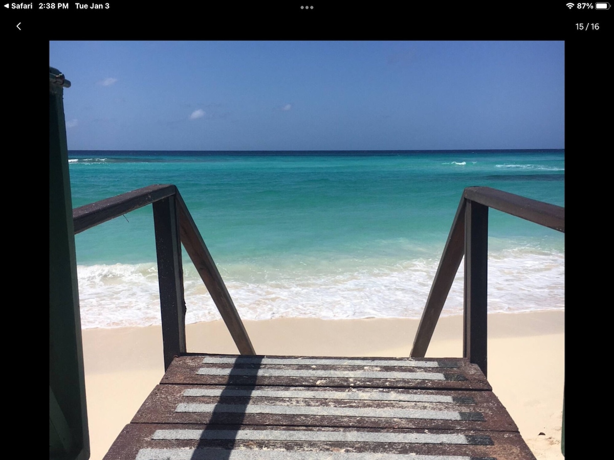 Warmest welcome! "One Love" sits at the entrance of St. Lawrence Gap—the vibrant heart of Barbados' dining and nightlife. Perched on a private beach, its stunning pool blends seamlessly with the sea, where waves kiss the deck, redefining relaxation. From your third-floor apartment, wake up to breathtaking turquoise waters, the soothing rhythm of waves, and enchanting melodies of nightly music drifting through the air. The music can be loud at times, adding to the area's lively atmosphere.
