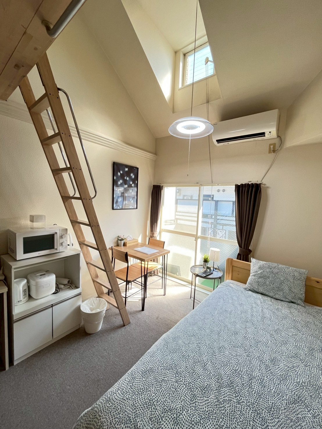 ご滞在中は小上がりの【和室】とハンモックでおくつろぎください♪ ホテルでは味わえない部屋造りです^^ 当施設は、熊本市中心部(上通り・上乃裏通りまで徒歩約5〜6分)のとても便利な場所に位置しています。 「上乃裏通り」は個性的で美味しい飲食店がいっぱい♪ ★熊本市中心部観光やお仕事などに、レンタサイクル「チャリチャリ」(有料、7円/1分))が利用できとても便利♪ お部屋のある建物1階に駐輪ポートがあり、街中観光にとっても便利! 詳しくは「チャリチャリ」で検索を。 ★敷地内駐車場1台無料(要予約)。 チェックアウト後14時までは駐車OKです。上乃裏でゆっくりランチでもいかがですか? ☆シングルベッド1、敷布団2 ☆ wifi無料 ☆ 熊本市中心部繁華街まで徒歩圏内 ☆セブンイレブン徒歩1分 ☆商店街、スーパー、クリーニング店徒歩圏内で長期滞在にも便利 ☆鶴屋デパート徒歩約10分 ☆室内専用洗濯機、浴室乾燥機あり ★プラスチックゴミ削減のため歯ブラシはございません 注意:ハウスルールを守られない方からのご予約は固くお断りします