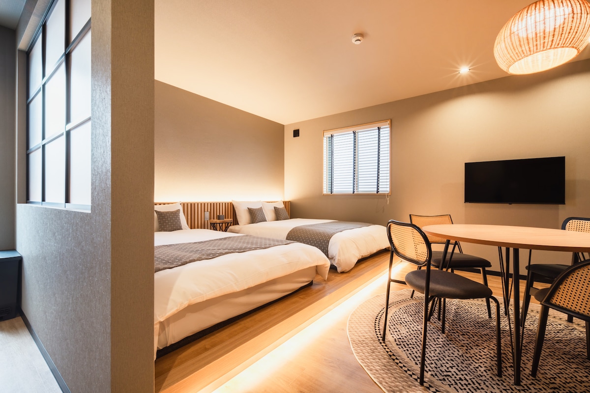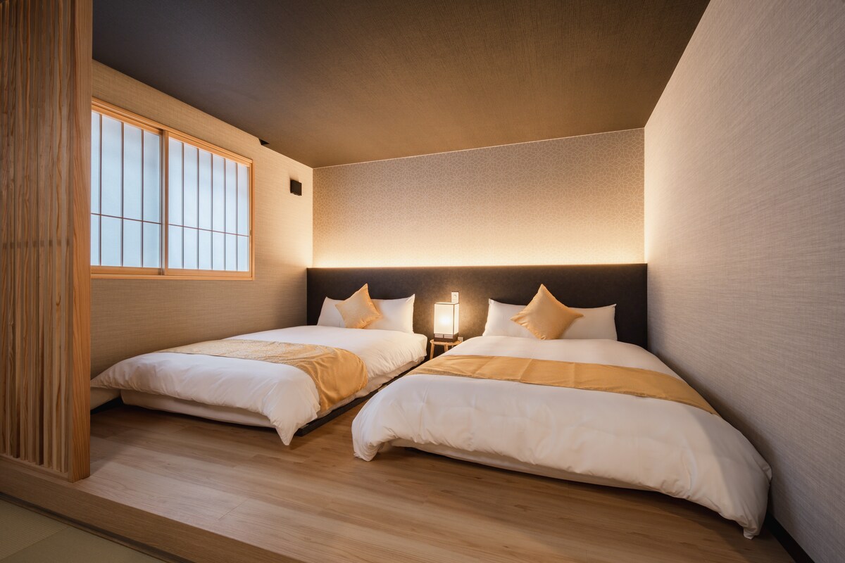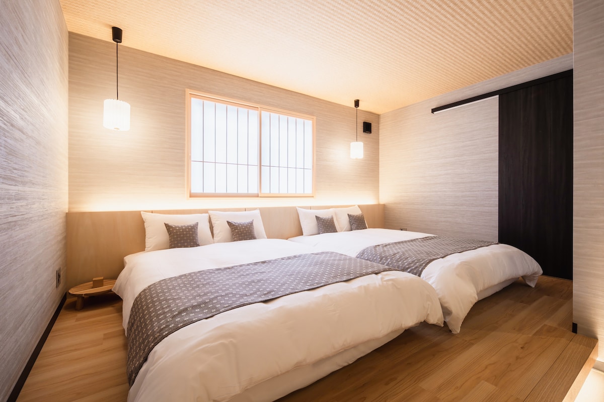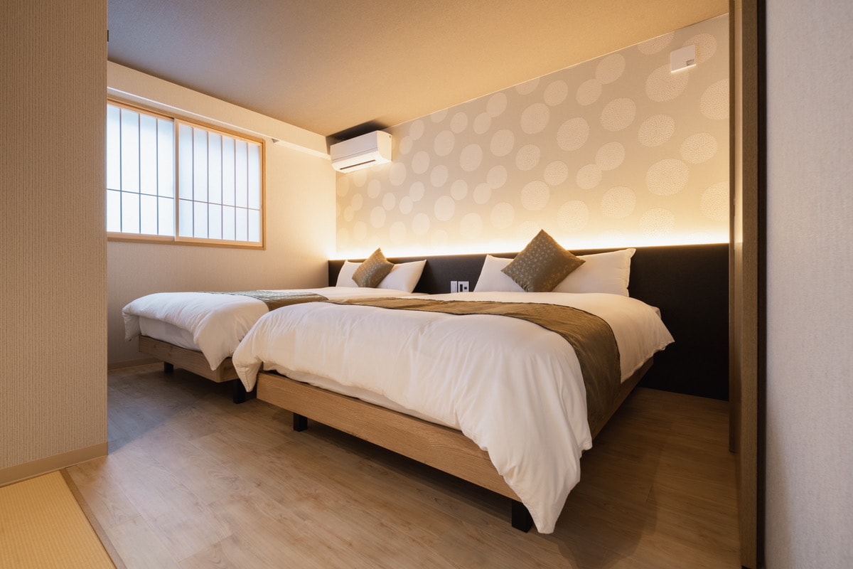 【别府(Beppu)站附近】两张标准单人床/一张小号双人床(自然色调)/可住4人