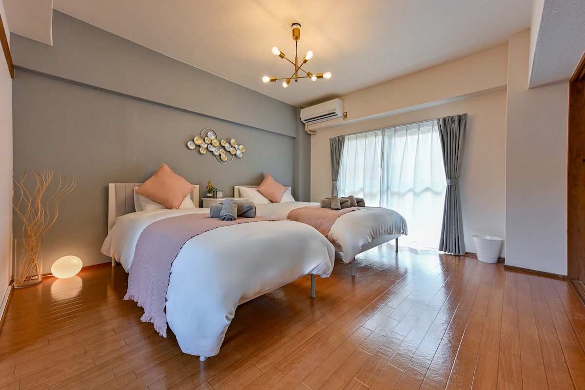 + Only minutes walk from BEPPU STATION and ONSEN!! + Free Parking lot is available + Modern Accommodation + "Brooklyn" Theme + Western bedroom with 1 double bed, 3 single beds + Spacious LIVING ROOM with TV and 1 Sofabed and 1 futon + KITCHEN with safe IH stove and all cooking equipment + Clean & modern BATHROOM with Washlet (Japanese Smart Toilet) + Brand new spacious BATH (and shower) with Washer and Dryer + For groups of 2-7 guests