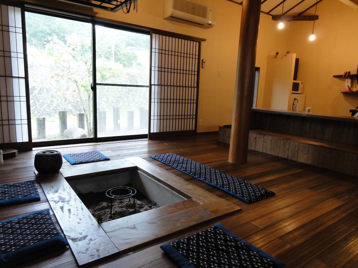 This rustic cottage is 1 of 3 listings available in our private village, Jizobaru, which sits close to many Onsen towns Oguni, Yufuin, etc. Nestled in the middle of a forest, accompanied by the beautiful sounds of birds chirping and a running freshwater source of the Chikugo river. This secluded mountain cottage will be the perfect retreat to escape your busy lifestyle. Located at the border of Aso National Park, far from neighbors, you might even be lucky to stargaze on a clear night.
