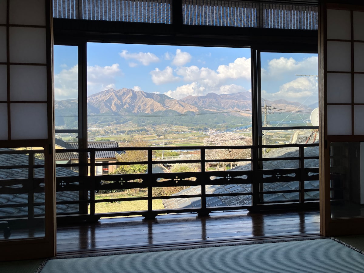 Whole house rental天然温泉別荘、窓から高原風景、黒川温泉街車で5分、Wifi駐車場