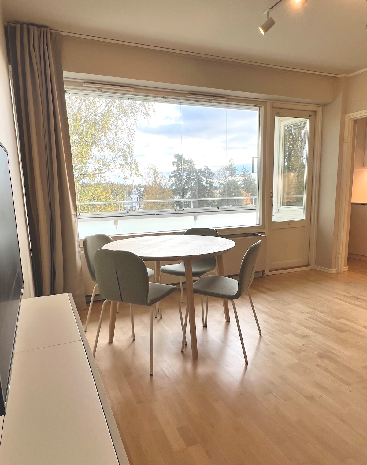 This beautifully furnished 41 m2 Studio with Sauna is surrounded by nature and a lovely lake. The apartment has a 160 cm double bed and a 140 cm pull-out sofa bed. The property comes with a fully fitted out kitchen. Enjoy free parking and a fast 20 minute connection to the city from Kaunianen train station (AB zone). The train station is a 15 min walk or 5 min drive (free all day parking also at the train station) The apartment also has 2 Jopo bicycles you are free to borrow.