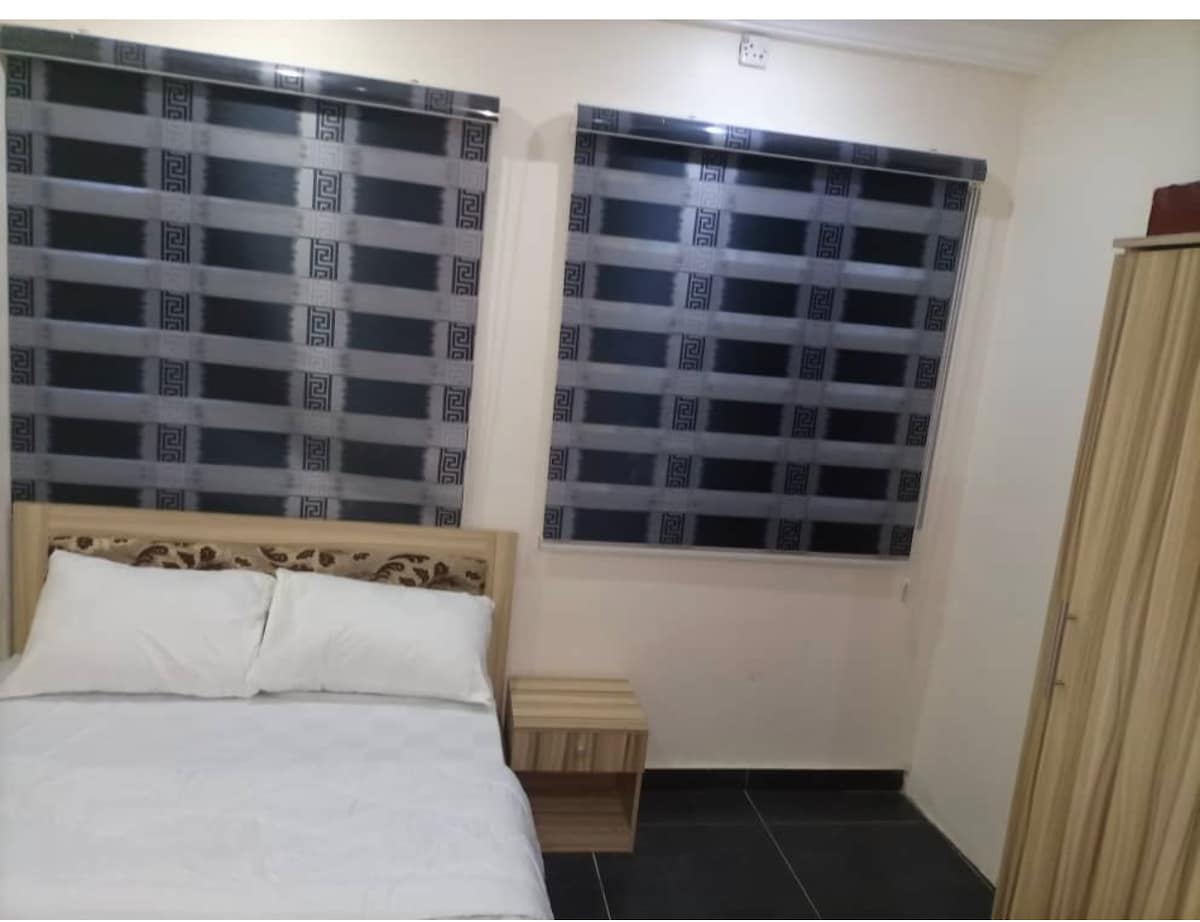 This stylish and unique place sets the stage for a memorable trip. FEATURES: - Gated and Secured Estate - Swimming Pool - 24/7 Power Supply - Serene environment - Free Wi-Fi - Daily cleaning - Daily housekeeping - Dedicated car park space - Tastefully furnished - Clean Water Supply This place will leave you with unforgettable memories.