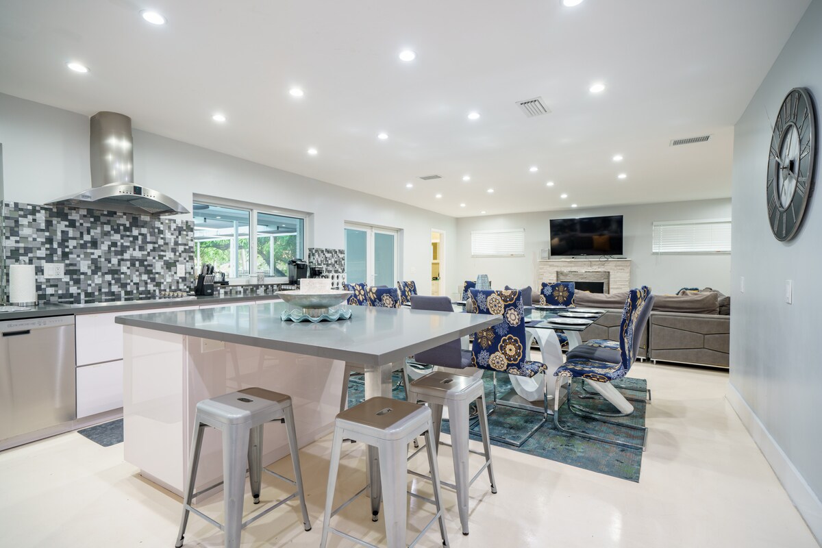 Welcome to our chic, redesigned home, conveniently located just a short drive from the beach. Experience the bright, open-concept living space and a state-of-the-art kitchen. Enjoy the beautiful outdoor dining area, gazebo, and sparkling pool—perfect for a relaxing day in style. This space has been crafted to uphold the highest standards of quality and comfort. - 8 min to Hard Rock Stadium - 20 min from Fort Lauderdale Airport - 25 min from Miami Airport - Heated Pool with water fountain