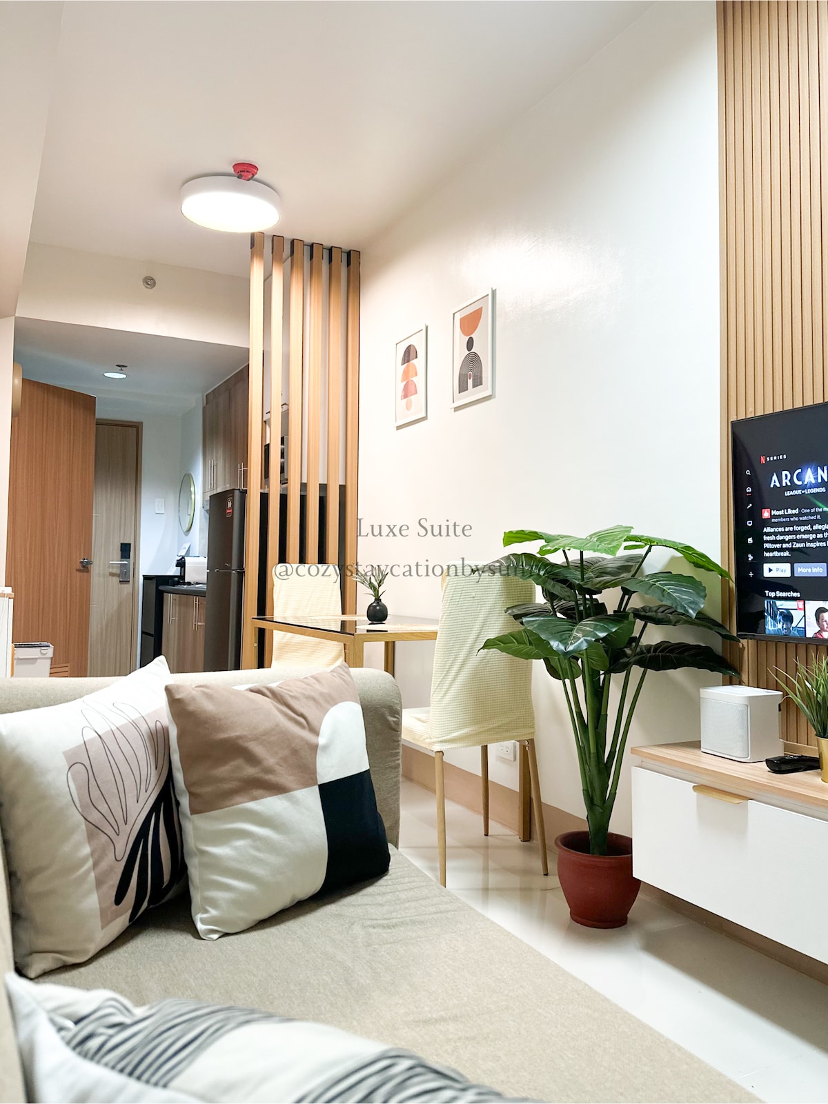 Welcome to your perfect home base in Metro Manila! Our luxury homely staycation is ideally located just minutes from the Airport, MOA, City of Dreams, Solaire, Nobu, and Okada. Here's what you'll love: - 50 Mbps fast Wi-Fi - Water Heater - Fully Equipped Kitchen - Smart TV (44-inch) - Private Bathroom - Pet-friendly (free) - Free Pool Access - Free Gym Access - Free Basic Toiletries (bottled water, towels, dental kits, shampoo, conditioner, and bodywash) - Free Coffee
