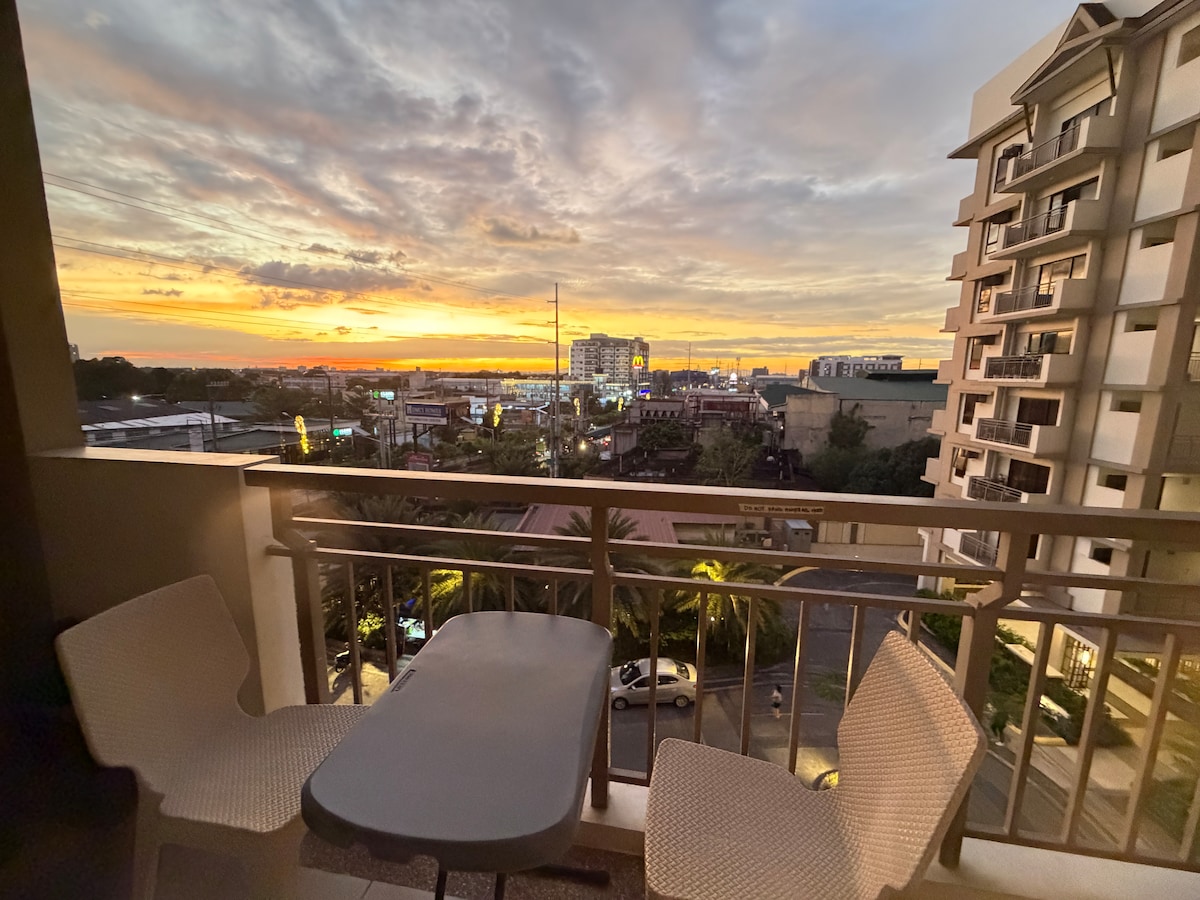"Welcome to D'Rustic Haven-condotel! We're happy to assist you during your stay. If you need anything, please don't hesitate to reach out – my contact number is in the welcome guide. Our location offers easy access to bars, restaurants, malls, and more. Note that we don't provide free parking, but fee-based parking is available 24/7, managed by a third-party provider. Also, please be aware that the pool is under maintenance every Monday. Enjoy your stay!"