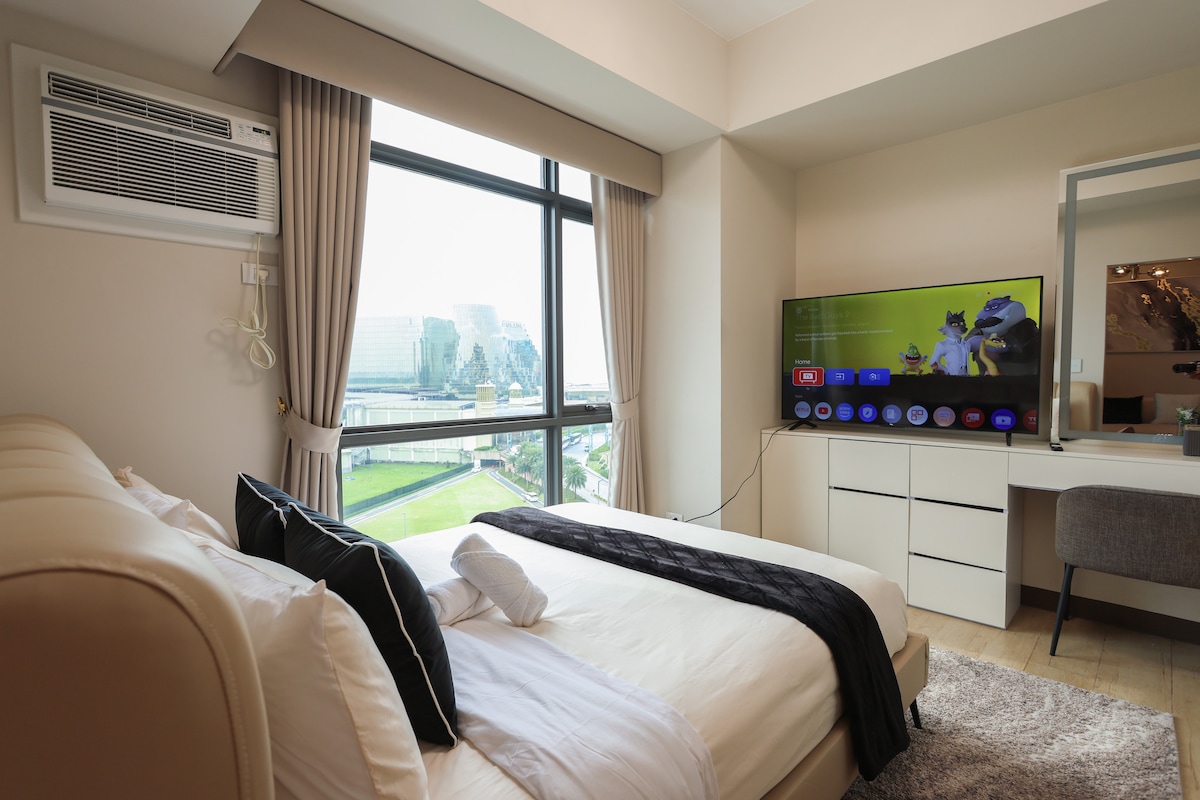 - Modern interiors with plush sofas and smart TV for ultimate relaxation - Private balcony offering serene views of the ocean for peaceful moments - Fully equipped kitchen with coffee maker and high-end appliances for your use - Steps from Okada, MOA, and vibrant city attractions nearby - Book your stay now for a memorable Bayshore Luxe experience!
