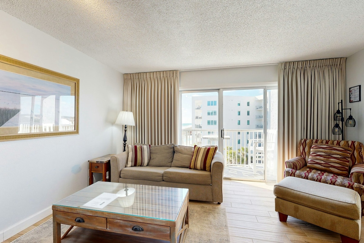 Escape to Okaloosa Island and stay at this cozy studio condominium at the Islander Resort. This 6th-floor unit is perfect for couples or small families looking for a beach getaway. Wake up to stunning views of the Gulf of Mexico from the private balcony, relax on the pristine white sand beach, or take a dip in the Gulf-front pool. Take advantage of the resort's amenities, including a fitness center, shuffleboard, and barbecue grills.
