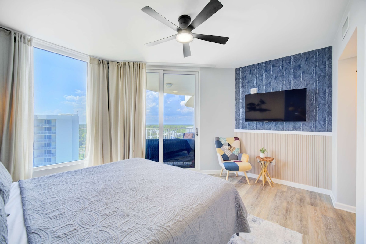PRIME LOCATION. CORNER UNIT. 8th floor 24/7 front desk & security. Heated pools. more than 30days call for special pricing. Across the street from Big Kahuna's water park. We have the best view of the beach! Sleeps 6 . 2 high end queen sleeper sofas. It’s like sleeping on a real bed. king bed in the master, twin bunk beds in the hall. Good for families, couples, solo adventurers, relaxing vacations. Steps away-marina, waterpark ,shopping.