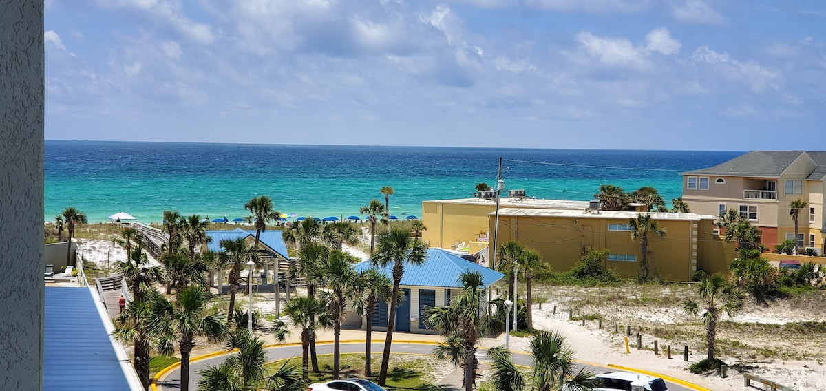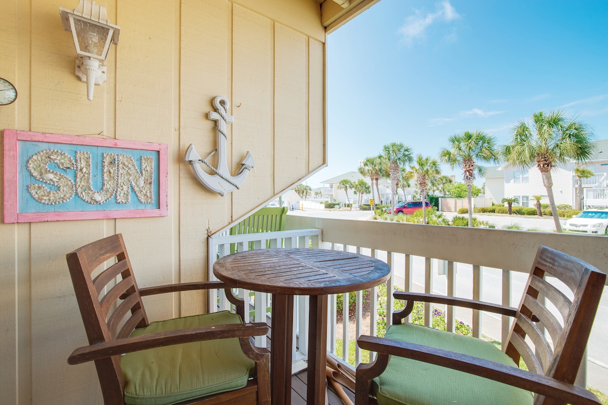 Stay with us, be our guest! Newly remodeled beach studio condo, beautifully decorated, clean, & comfortable. Fully equipped to make your stay a wonderful experience. Ideal for small families/groups, couples, single and/or business travelers. Our property offers several amenities. Beach only steps across the parking lot (approximately a 1.5-2min walk). Destin FL is about a 15min drive. Condo located on 1st floor of Building 6