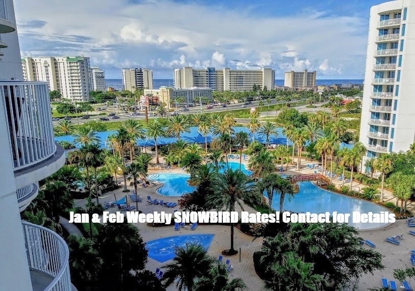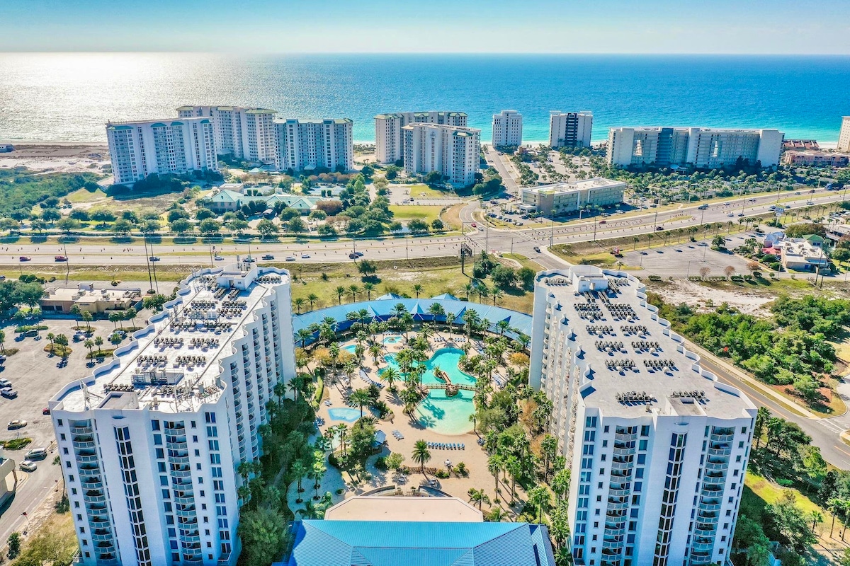 Relaxation awaits in this stunning, fully-furnished 2BR/2BA penthouse that comfortably sleeps 6. Bedrooms feature a TV, private bath, plus an in-unit washer/dryer for convenience. Breathtaking views of the Gulf and resort pool from your balcony. Discover our unique 11,000 sq. ft. lagoon pool with a zero-entry walk-in, hot tub, heated pool, and kid’s area. Nearby dining, coffee shops, and resort fitness center. Easy walk to the public beach across the street or 3 minute drive to Henderson Beach.