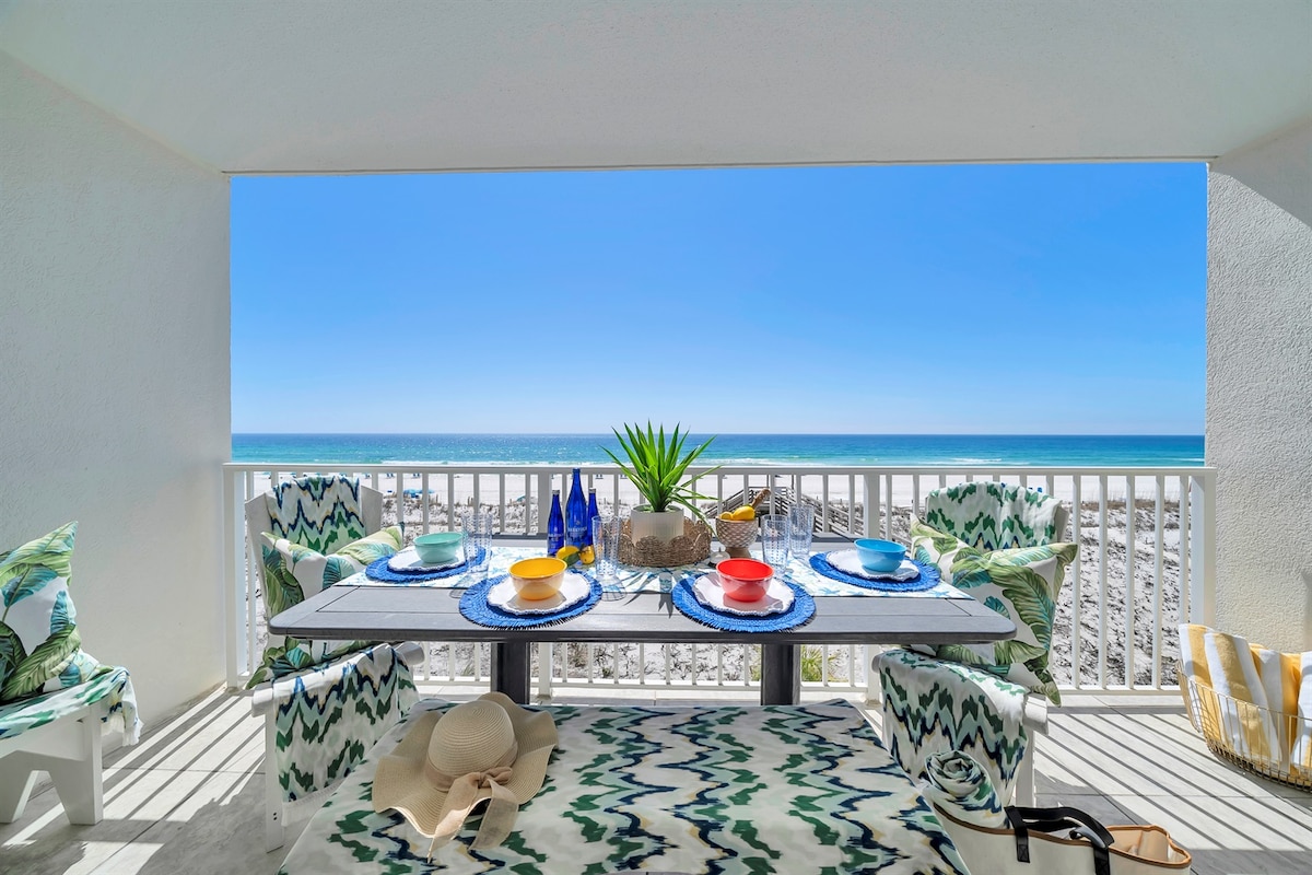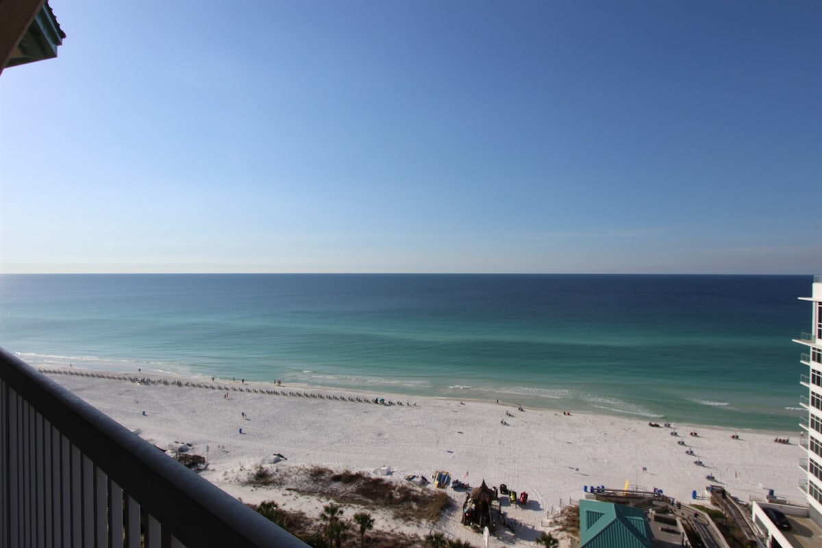 Completely renovated 8th floor condo right on the beach with unobstructed views of the Gulf and the beach. Located in the heart of Destin in popular Pelican Beach Resort, you will enjoy the private beach, multiple outdoor pools, an indoor pool, hottubs and more. Our beachfront condo has been professionally renovated with brand new cabinets, AC, floors, appliances, furniture, kitchen and more. All mattresses are brand new, cool-gel memory foam for a cool night's sleep. Fully stacked kitchen.
