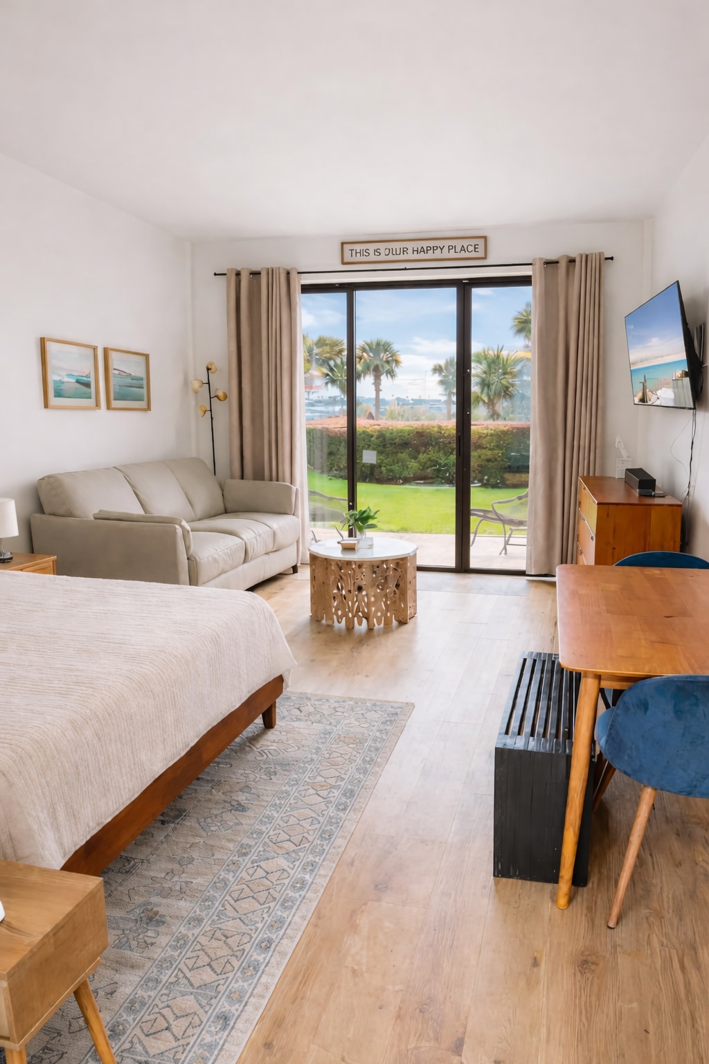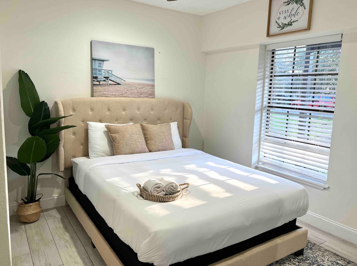 Sit back and relax at our hidden gem. This airy 1 bedroom, 1 bath property is peaceful and centrally-located in Fort Walton Beach. Only 7 minutes away from the Beach of Okaloosa island and 15 minutes from Destin. With neutral creams and blues throughout the space, it makes you escape from the busyness of life and has you step into Vacation Mode! Want to stay in after a long day at the beach? Kick on the tv and play a few games, or even sit on the back porch under the mood changing lights.
