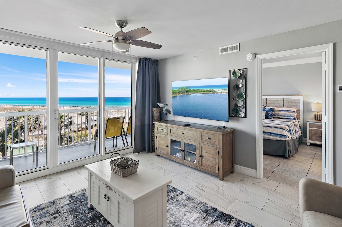 NO PETS PERMITTED. PRIMARY GUEST MUST BE 25+ TO BOOK. Indulge in a refined coastal escape at Pelican Beach Resort 1203—an elegantly renovated 1‑bedroom, 2‑bath BEACHFRONT retreat offering breathtaking Gulf of Mexico views and DIRECT, effortless access to Destin’s sugar‑white sands. Perched on the 12th floor, this beautifully appointed residence blends contemporary comfort with resort‑level amenities for UP TO 6 GUESTS, creating an elevated experience for both families & discerning travelers.