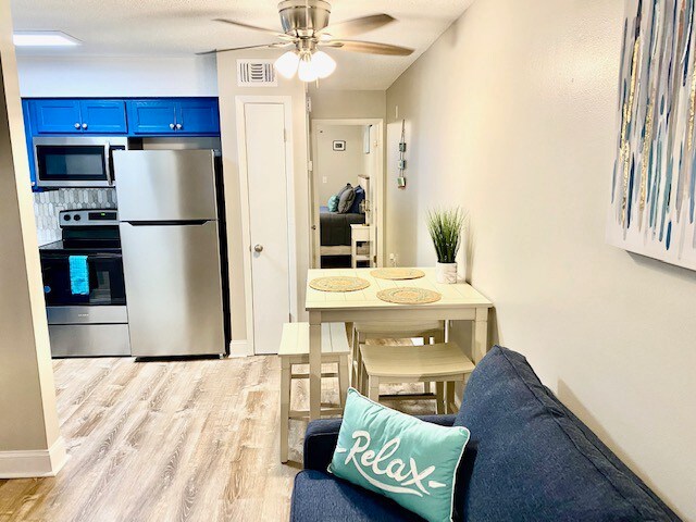 Nestled in the heart of Destin, FL this is a quiet, cozy space meant for travelers who want to enjoy all the fun of Destin, but have a relaxing and clean place to come home to at the end of the day. The studio has been recently updated and has a beautiful kitchen with new granite countertop, new appliances, modern walk in shower and new tiles. There is a King bed and leather sofa to relax and watch Youtube TV channels, Free WiFi provided. I hope you love it as much as we do!!!