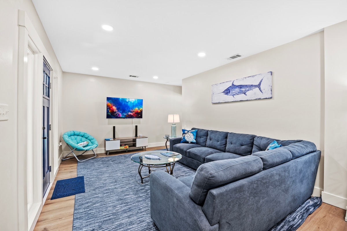 Ocean House, the PERFECT getaway, has 4 bedrooms with 5 total beds in 4 bedrooms, 3 full bathrooms, and only 3 miles to the beach and 2 miles to downtown! Most baby and cooking amenities are provided. Basketball, Pickleball courts, and a playground are just across the street! TVs in every room. Boats and RVs welcome! Amenities include an arcade, ping-pong, put-put, fire pit, piano, and grill. Jet Park for the kids is a rock throw away. Beaches, crab island, waterparks and more! Book with Ronin S
