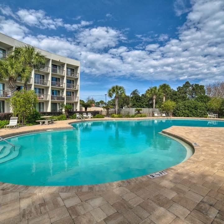 This sunny Fort Walton Beach getaway is perfect for small families, couples, and businesspeople alike, with a small private beach, two shared pools, and more! With shopping and dining just a short walk away, you'll love your new home away from home for four's great location, almost as much as you'll love relaxing in the pools or boating at the dock! Okaloosa Island's boardwalk and pristine beaches are just a short drive away.