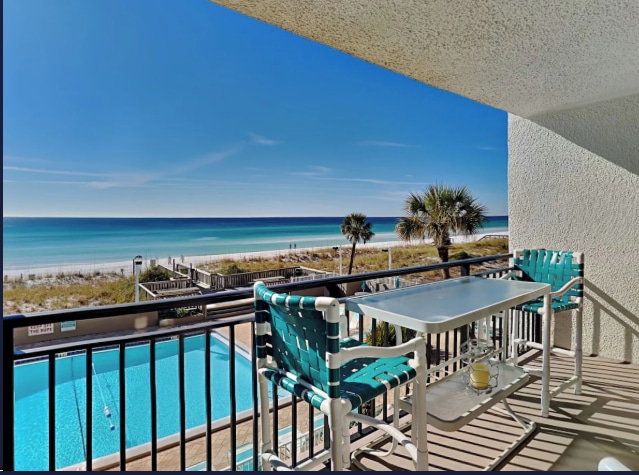Welcome to Okaloosa island! Come experience gorgeous Direct Beachfront unobstructed views! This studio has everything you need for a fabulous beach getaway! Private balcony. Just seconds to beautiful beach & Gulf. 2 Chairs & Umbrella have been purchased for you w/ full beach service$50/day value (Mar-Oct)for a beautiful beachy day! 4 min drive to dining. Lg pool. LVP flooring*2022*Couch*2022*Premium foam mattress*2022 Spotless w/Low Cleaning Fee! Must be 22 years old to book w/ proof of ID