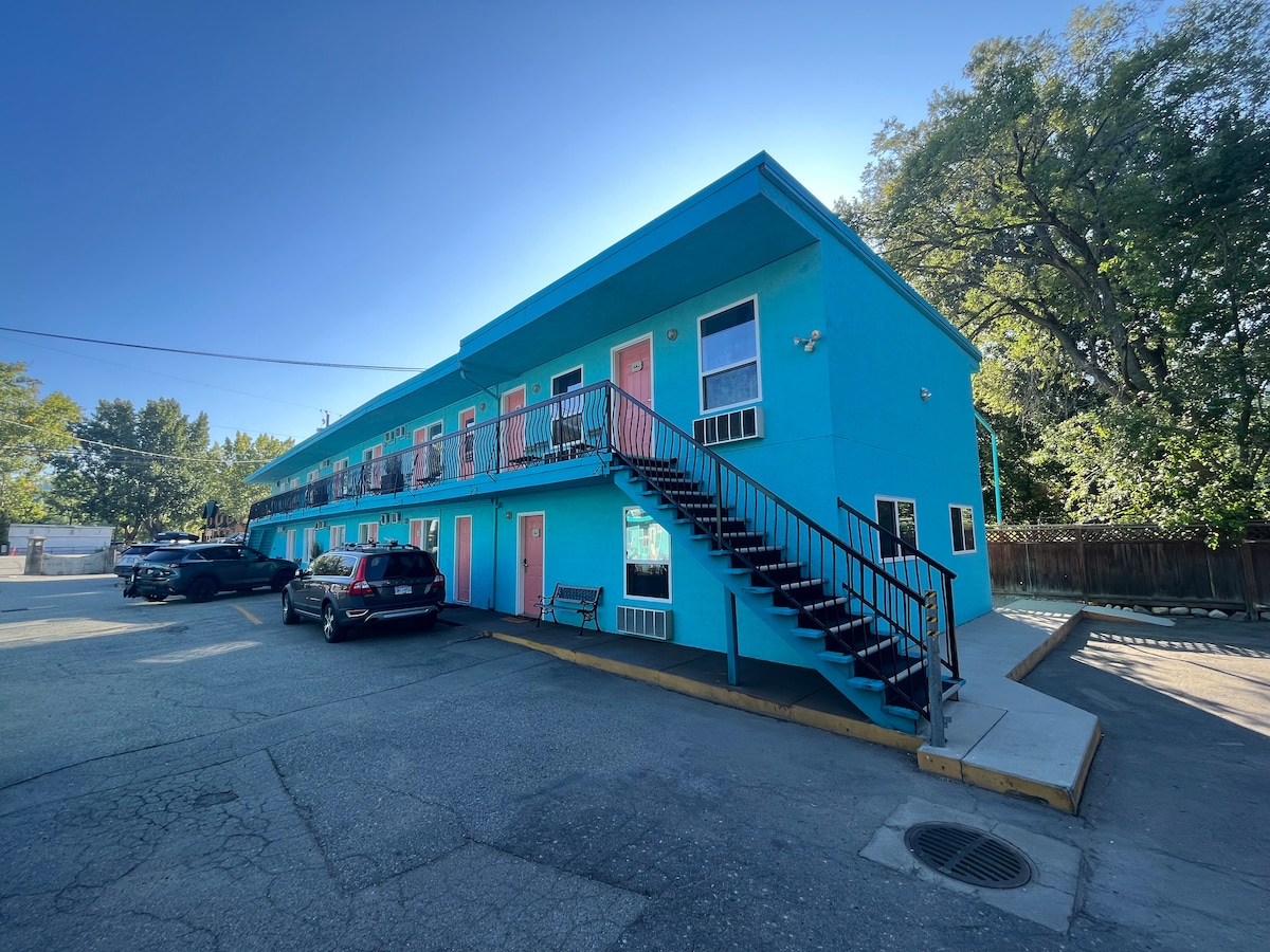 Experience the charm of the Historic Ok Falls Hotel, a 70-year-old boutique hotel in the quaint village of Okanagan Falls. This is one of our double suites! 2 private bedrooms with separate entrances, connected through the private bathroom in the middle. You’ll also have access to our common spaces! Endless activities await! In the heart of wine country, several award-winning wineries are minutes away. A short walk takes you to beautiful Skaha Beach, or explore the KVR trail on your bikes