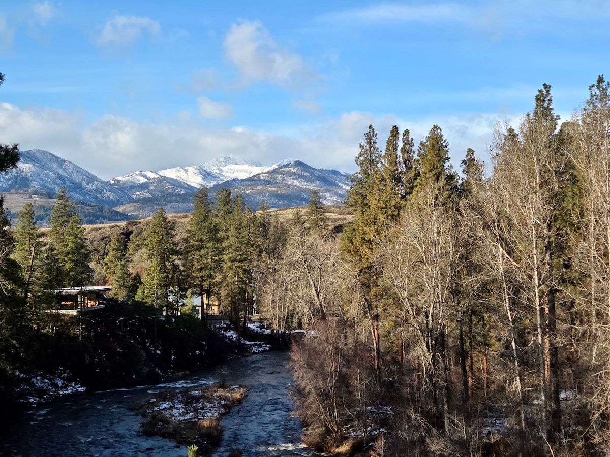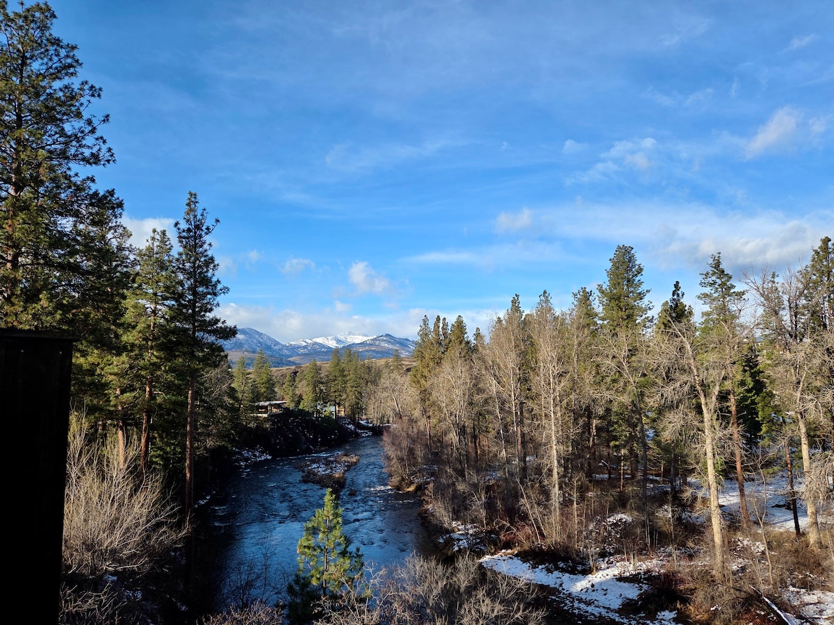 Rippling River Suite is a dog friendly(limit 1 dog) spacious, beautifully appointed river-view suite located at RiverSong Suites, perched on a bluff overlooking the Chewuch River. Enjoy peaceful views across the river to a nine-acre riverside park, accessible via one of Winthrop’s walking suspension bridges, with mountain and foothill vistas beyond. Downtown Winthrop is just an easy stroll away.