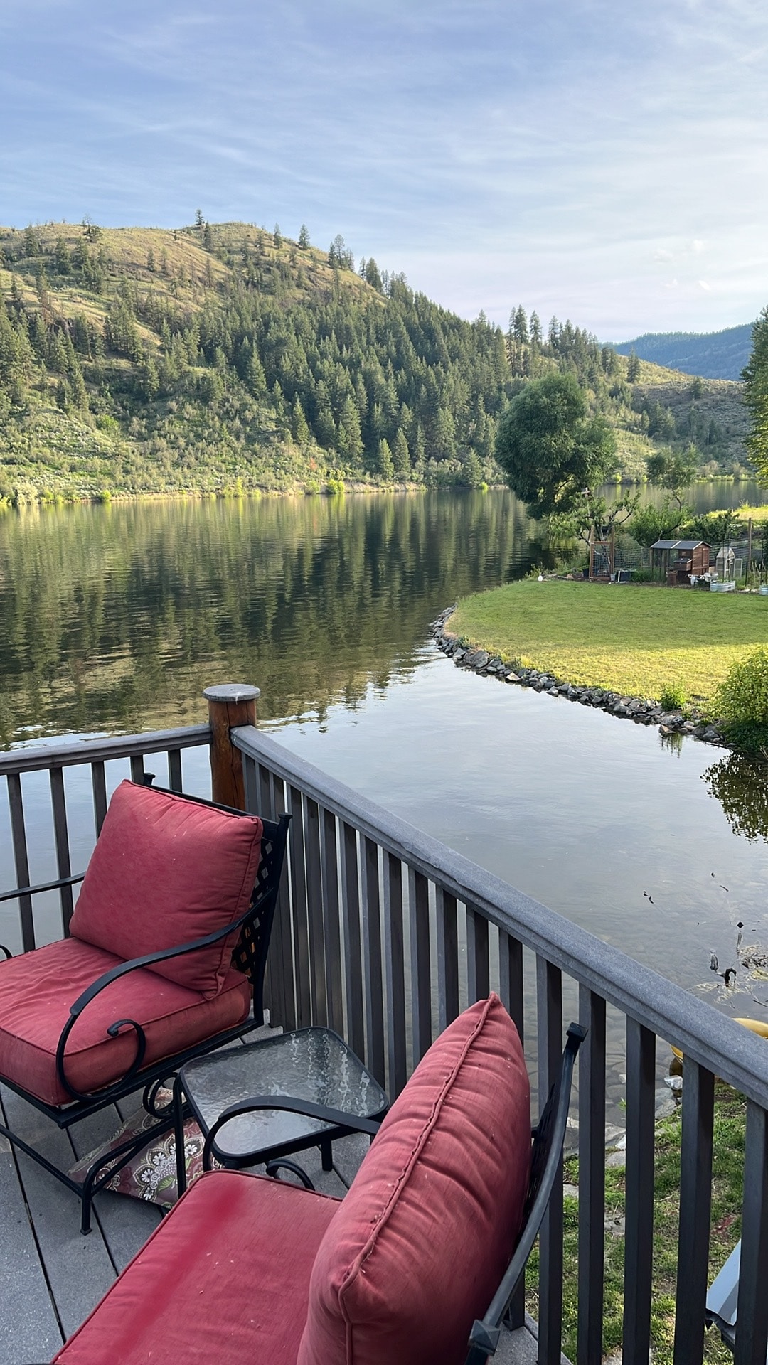 Methow valley custom home, far above the Methow river and Columbia valley. Nearly 360 degree views - west into the Sawtooth mountains, north up the Methow river and North Cascades and East to the Columbia river and eastern wheat fields. You get the whole place to yourselves, lots of privacy and quiet, at the top of the mountains. We have recently expanded the patio in the front to 300+ square feet, with a gas BBQ and a new picnic table. It's a great place to hang out, morning or evening.