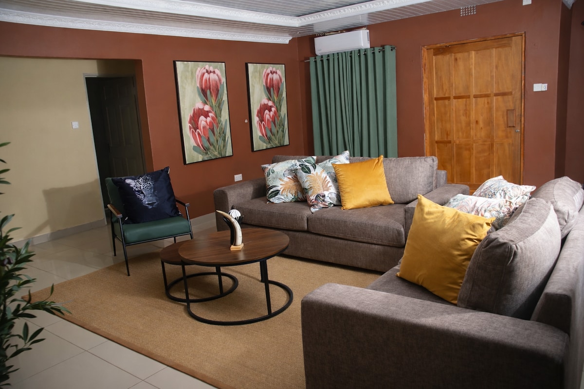 Enjoy a stylish experience at this centrally-located place. Just 3min to Delta Palm Mall, 7min to Mall of Maun For your stop-over or short term stay, you will feel right at home in a fully furnished one-bedroom house Full Kitchen, Furnished Lounge, Hot Shower, Air-conditioned Bedroom with a Kingsize bed ( that can be converted to 2 single beds), you will have everything you need to feel right at home