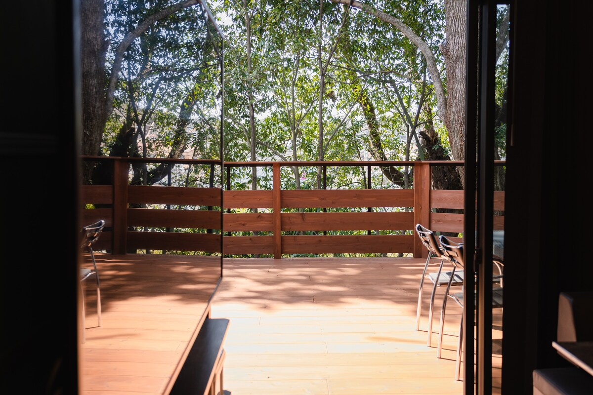 【木质露台,阳光透过树木照射进来】90㎡别墅、精致非凡、最多可住8人、距离冈山站10分钟车程、桃雉安别馆
