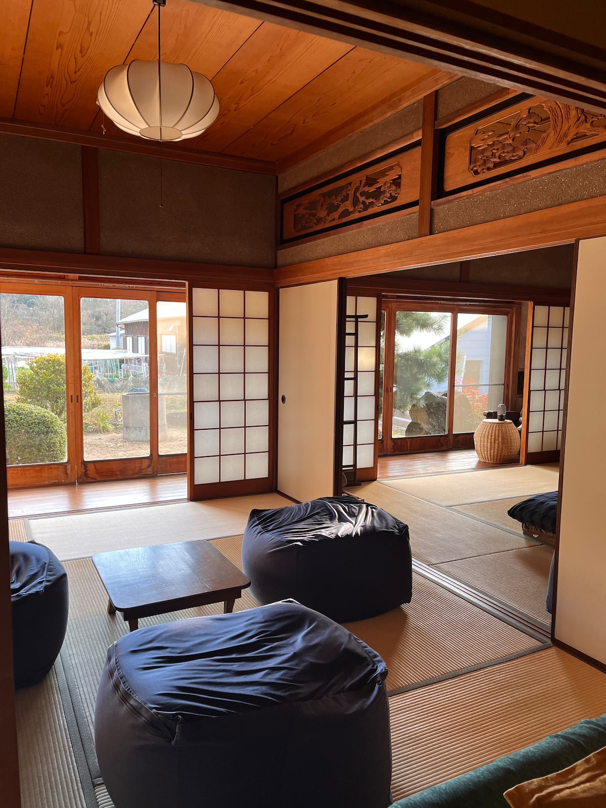 Commune Stay は「暮らすように旅する」体験を提供する、昭和レトロな古民家の宿泊施設で、猫2匹も夜に帰宅します。 2026年3月から一棟貸しにリニューアルしました。 豊島の木々を使った梁を見せる天井や昔ながらの玉石タイルを残した風呂場、レトロな建具や模様の入ったガラスなど、貴重な建具や床材はできるだけそのままに、島や家の歴史を感じられる空間に仕上げました。 山や海に囲まれ、四季あふれるこの土地で、ゆったりと流れる島時間をお楽しみください。 ・3泊以上で山頂の夕焼けツアーにご招待 ・3泊以上から割引有 ・セルフサービスの朝食付き:オーガニックコーヒー・パン・手作りジャム・平飼い卵・豊島産天日塩等 ・電動自転車の有料レンタル有 ・島の食材で作った発酵ディナー定食有 ・カフェ営業日に限り、トイレと洗面所が宿とカフェの共有スペースとなります ・唐櫃港から徒歩5分 ・小豆島、直島、高松、犬島、宇野行きの直行便があるのでご旅行の拠点にも [島内情報] ・火曜日(月曜火曜が祝日の場合は水曜)は、美術館やアート作品、飲食店が休館 ・スーパーやコンビニはありません。個人商店の営業は17時頃まで