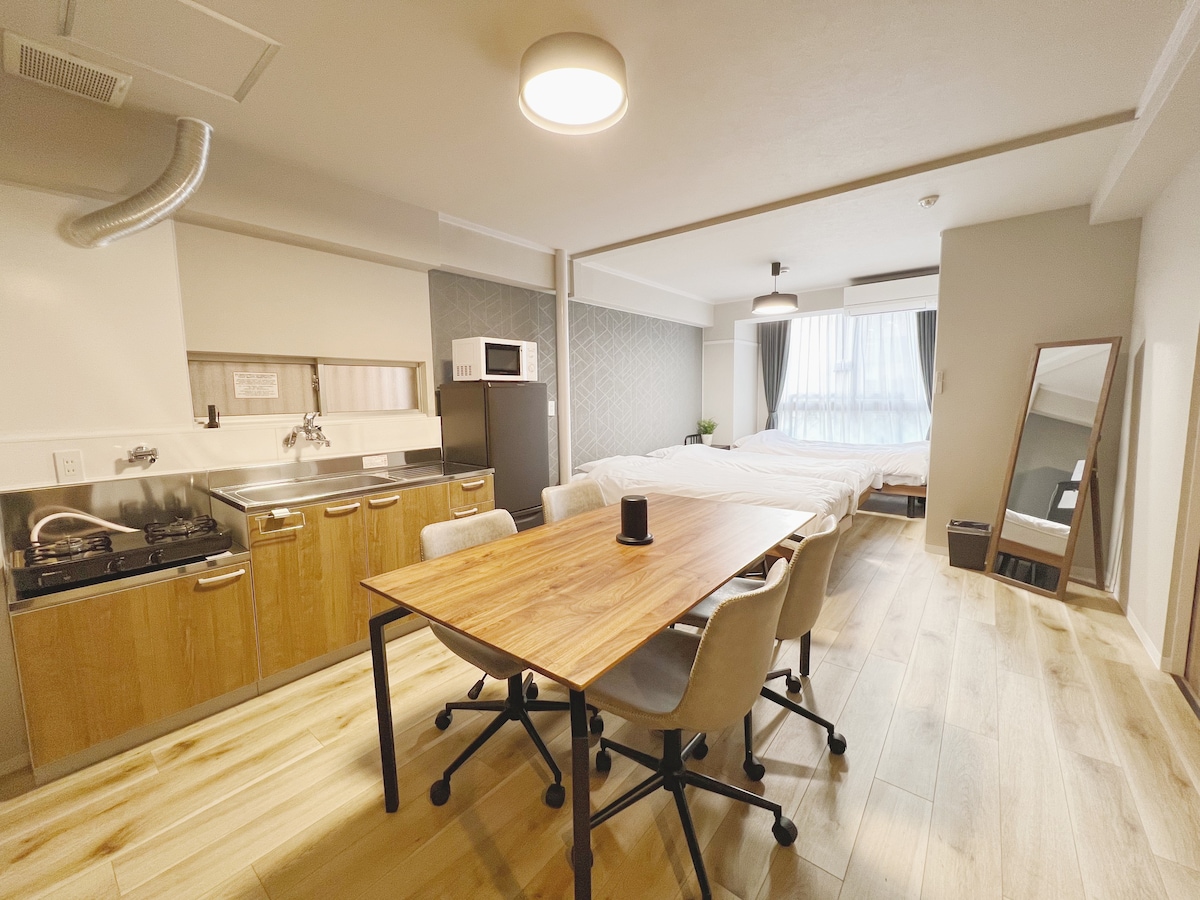 名古屋駅から徒歩圏内、ビジネスにも観光にも便利な立地にある1LDKのプライベート空間「NAGOYA-HUB405」。 Wi-Fi完備、ワークスペースにも最適。 家具・家電・キッチン用品を揃えた快適なステイをご提供します。 シンプルな1Rながらも、個性的なインテリアと明るいカラーリングが魅力。 出張・観光・長期滞在の拠点にぴったりです。 ・マスタードイエローのソファ ・カフェテーブル&サイドテーブル付き ・Wi-Fi完備でワーケーションにも対応 ・独立洗面台+室内洗濯機あり 立地の特徴 名古屋駅 徒歩10分 太閤通駅 徒歩4分 コンビニ・飲食店 徒歩1分圏内 静かな住宅街に立地 観光・出張の拠点に最適