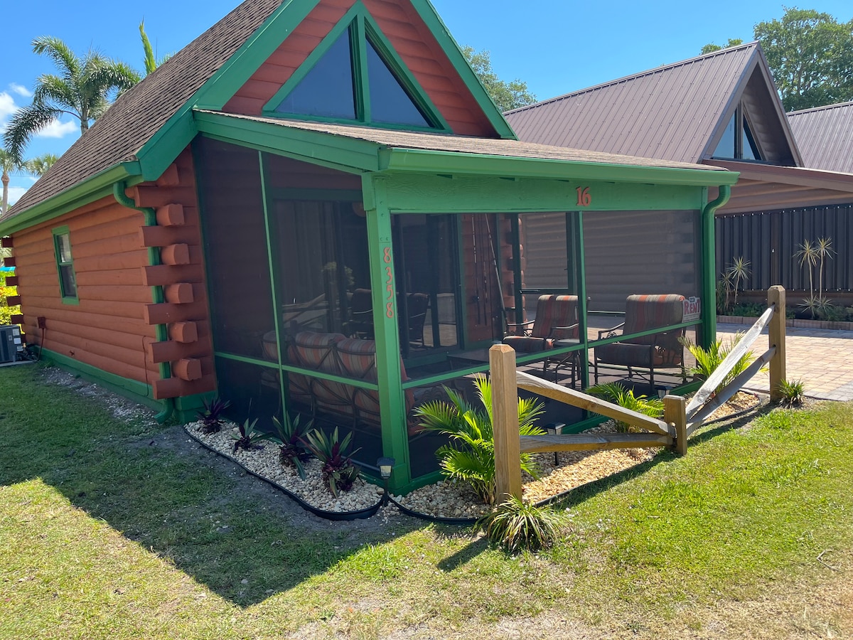 Welcome to our cozy and serene cabin at Lake Okeechobee. Watch beautiful sunsets, and boats going by from the screened in porch. The cabin is located on the rim canal of the northern part of the lake. This is the only log cabin condo community in Florida. You can fish from the docks, bring or rent a boat, and park it right in your backyard -- docks are first come first serve. The property also boasts a boat slip, which is for use by all residents and guests of the community.