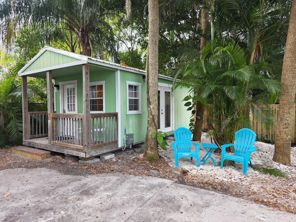 Take it easy at this unique and tranquil getaway. You’ll love being able to walk into downtown Jensen Beach, along the waterway, to eat, drink and shop at great local places. The best beach in Martin county is only 1.8 miles from the property. The property has dock access for fishing and watching awesome sunrises over the Indian River. There is a private patio with a charcoal grill and a table and chairs for outdoor dining. The bed is king size and super comfortable. There are 2 TV's in cottage.