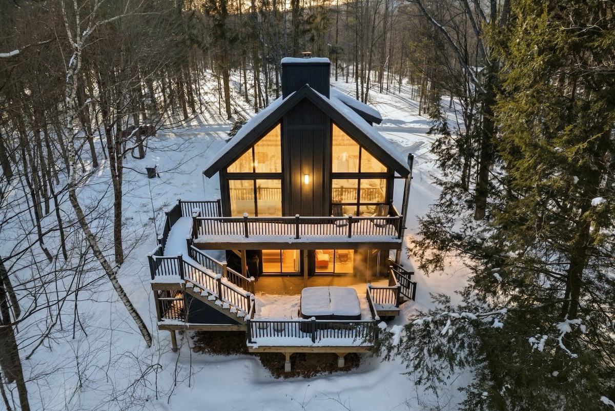Escape in a beautiful light-filled upscale cabin deep in the woods at Sugar Maple Mountain Retreat. Relax at the end of the day in our hot tub which is shared between our 3 cabins. Steps away from two picturesque lakes, enjoy complimentary seasonal use of our kayaks, paddle boards and snow shoes. Go fishing, biking, hike country roads or trails on the 1275 acres of surrounding preserved land. In winter hop on the VAST trail nearby. 4 WD Required Dec 1- April 15th