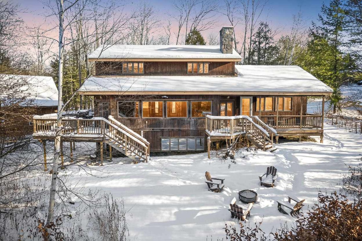 中世纪现代主义风格的佛蒙特州梦幻度假木屋,靠近滑雪场、湖泊和森林
