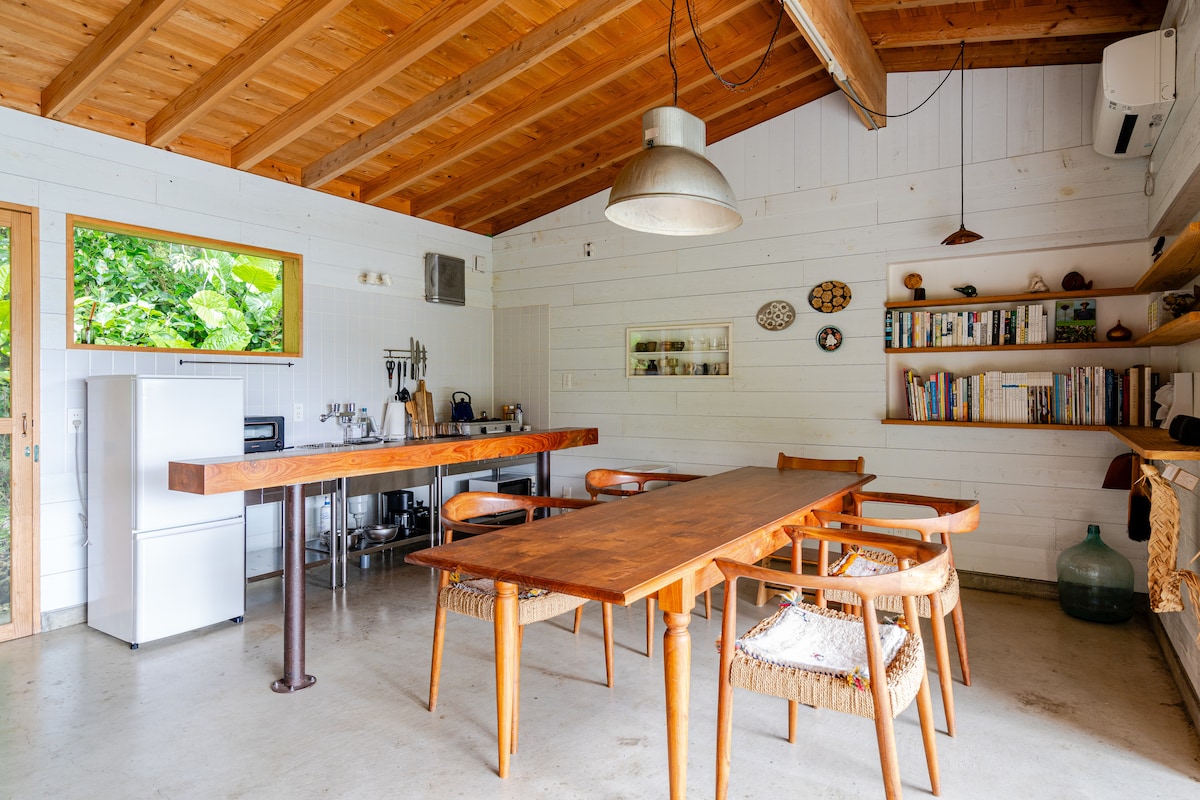 Nanjo City is located in southern Okinawa. It's about a 40-minute drive from the airport. The accommodation is surrounded by abundant nature, and the nearest Nibal beach is only about a 15-minute drive away. A beautifully designed wooden house surrounded by banana fields and a view of distant hills. In the morning, you'll hear the birds chirping and enjoy the pleasant morning sun streaming in through the large east-facing window. In the dark of night, you can enjoy a sky full of stars.