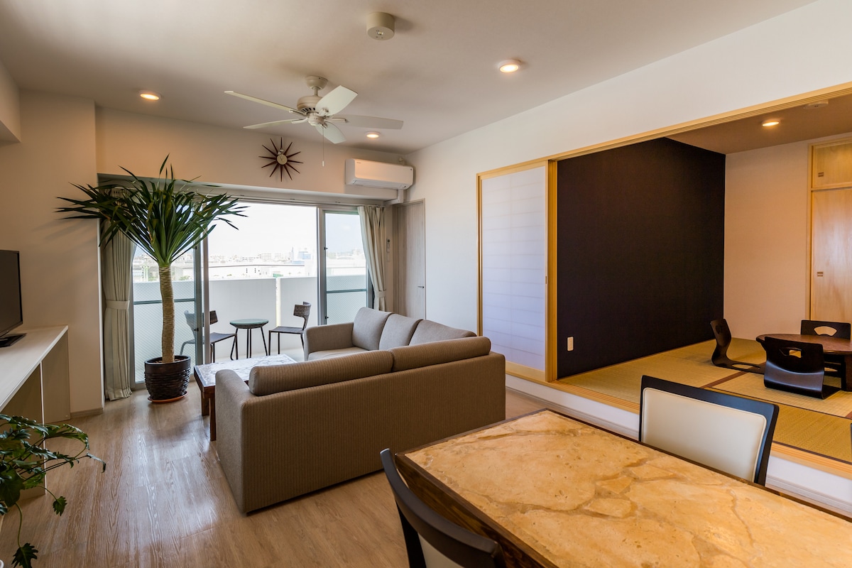 Thanks for checking out my apartment! This is a room in the Araha-Chatan area. It's very close to American Village, and it is perfect for enjoying the exciting part of Okinawa. Of course, if you want to go to the aquarium or the north of Okinawa, you have instant access to Route 58. We're looking forward to hosting you ★ Room size (88.3㎡) ★ Children under 5 years old are free ! Please add guest Infants(Under 2) when booked. ★ 1 free parking lot. ★ Wi-Fi. ★ 5 minute walk to the beach.
