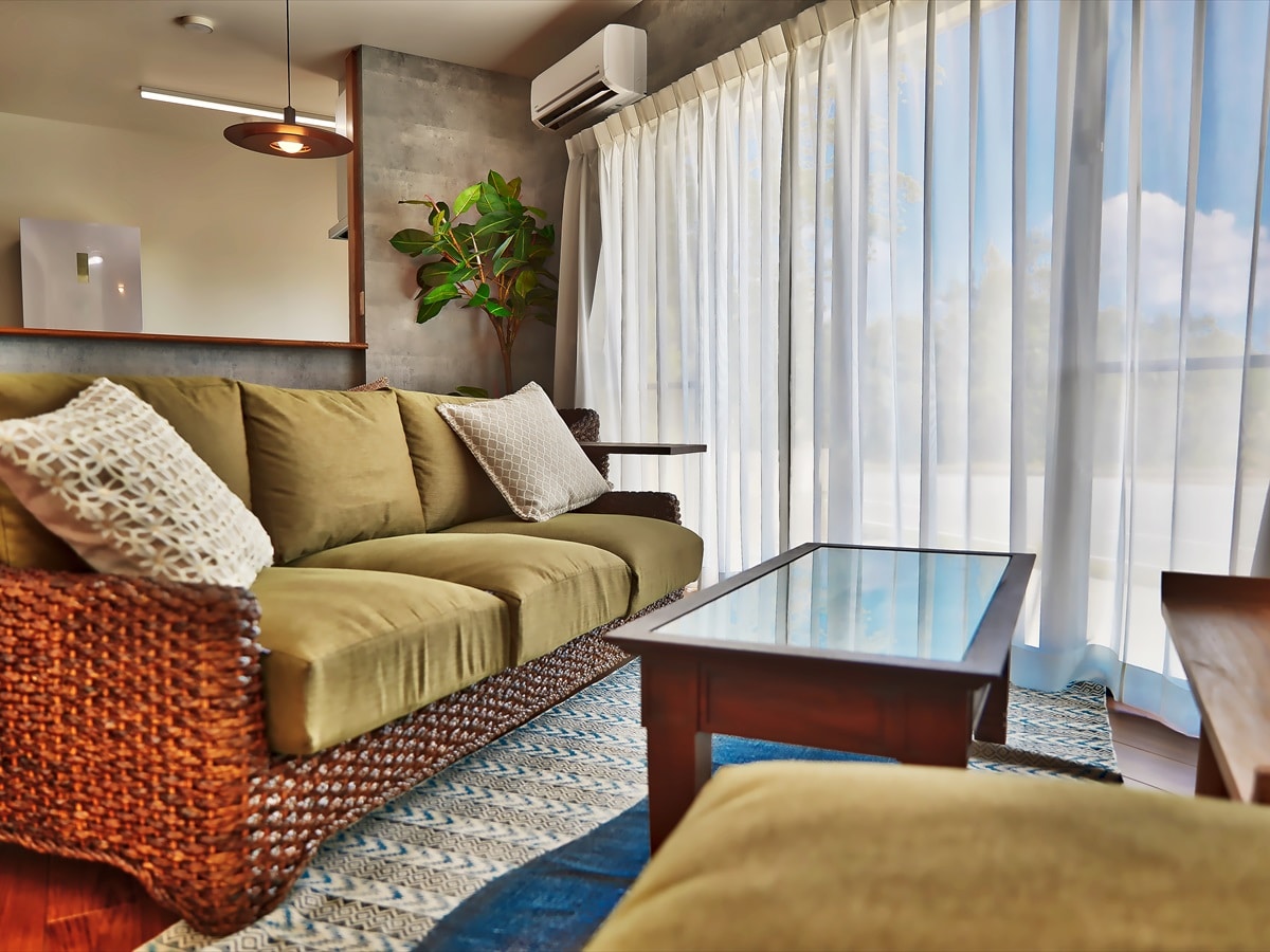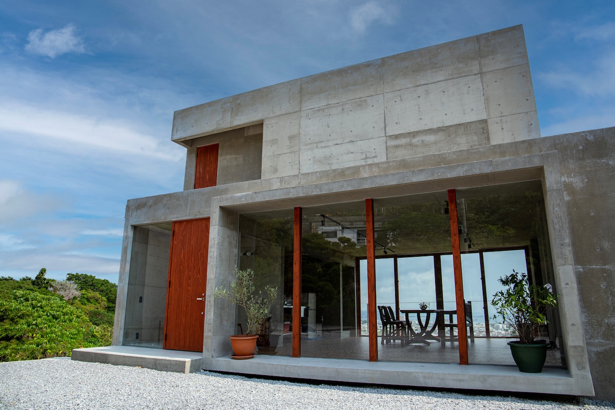 Head east from Naha, Okinawa. Nanjo City is about 30 minutes by car away. This is a place where many myths and ruins from the beginning of the Ryukyu Kingdom are scattered, including the World Heritage Site, Sefa Utaki. The house located on a small hill, is a private space surrounded by the sea and mountains, and is surrounded by the beauty of nature. From the large, fully open windows, you can enjoy a spectacular view of the sea and a quiet time away from the hustle and bustle of everyday life.