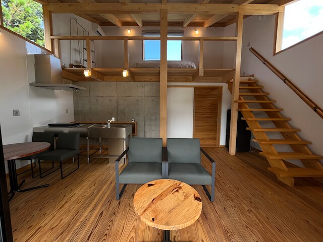 沖縄本島北部、やんばる国立公園内にあるコテージ 世界自然遺産エリアにも近く 大自然の中にあり電線も上下水道も引かれていません 電気はソーラーエネルギーを利用し Wi-Fiはスターリンクを使用して宇宙からWi-Fiが届きます 夜は近くに街灯も無いため満点の星空 満月の月明かりはとても幻想です 騒音もほとんどなく穏やかな休日を過ごすことができます! 敷地内には、国の特別天然記念物ヤンバルクイナやノグチゲラなどの貴重な生き物が生息しており、動物観察に最適です。運が良ければベランダからノグチゲラを見ることができます 余った電気は蓄電池に貯めて使用します 雨が降り続いたときはエアコンは使用できない可能性があります オフグリッドハウスを建てたい方にも最適なコテージで 設備もホストがデザインしましたので 説明会も別料金で案内可能です 水道は近くの清流から高性能なフィルターを通して 利用します。 排水は清流に流したくないので、排水をトイレに再利用し、余った排水は敷地内にて蒸発させています 台風が来ると道が倒木で通行止めになりますので直前でキャンセルになります。台風時の宿泊はできません