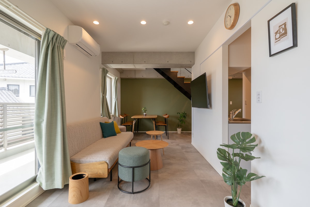 💐Welcome to our 2 bedroom suite - perfect for a family or a group looking for private bedrooms and gathering lounge space. 70㎡ (750ft2) space is the most comfort for 1-4 adults with 2 children. We are located in a peaceful residential area close to famous restaurants, convenience store, rent-a-car offices and playgrounds. Recommended for self-driving travelers and long staying. Your suite is on the ground floor of 2 story home. Host family lives up stairs. Welcoming kids.♪