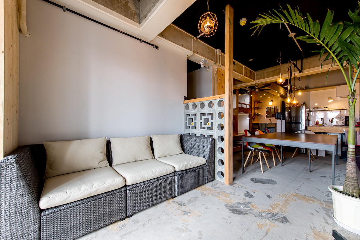 ポッドシェアタイプの一括貸しのお部屋で最大4人まで宿泊可能です。 コンビニ・石垣市公設市場2分、東バスターミナルまで歩3分、離島ターミナルまで歩5分とアクセスは良好で屋上からは満天の星空が。。。 ただしエレベーターなしの5階ですので小さなお子様がいる方には不向きです。 洗濯機・ガス衣類乾燥機が無料で利用でき、キッチン&調理器具、水素水サーバー、ソーダストリームなどの家電も揃っていて、猫足のバスタブ付きの浴室が特徴のお部屋です! お部屋の中心には大きなテーブルもありフリーランスの方は仕事も、またホームパーティーも利用することができます。 テレビアンテナはありませんが50インチの画面でスマホからChromecastを利用してソファースペースで映画を楽しむこともできます! 友人同士の旅行でアクセス重視の方にオススメです(^^♪ 5階のお部屋(エレベーターはございません) 駐車場なし(近隣にコインパーキングあり)