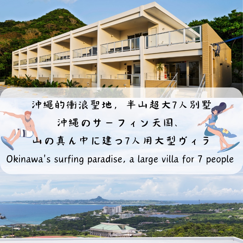 A冲浪胜地!超赞视野海景3室别墅丨冲绳7人温馨别墅丨独立厨房享烹饪乐趣丨驱车6分钟可达海边丨家庭出游