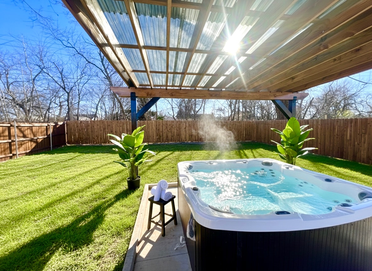 Escape to your home away from home in the vibrant Wheeler District! Our beautiful three-story, three-bedroom retreat offers a relaxing oasis with a four-person outdoor hot tub that lights the water up in your choice of 5 different colors and with outdoor string lights for a nice chill vibe. Enjoy eating breakfast, lunch or dinner in the backyard built in seating area. Explore the neighborhood's charm, from strolling walkways, neighborhood park and playgrounds, eateries, and many boutique shops.