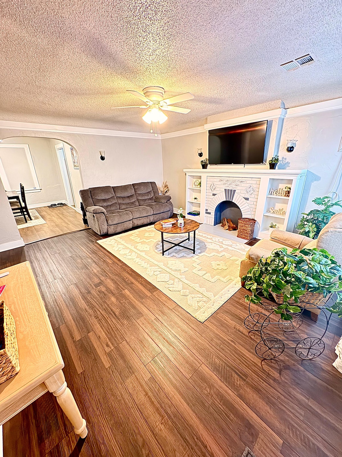 Designed with natural textures, earthy tones, & great natural light to ensure a cozy, calm vibe you won’t want to leave! Dbl master suite w/ 2 queen bds & 2 ensuite private baths makes this perfect for 2 couples, families, professionals, or anyone looking to stay in the heart of OKC and still get a local experience. PLAZA is OKC's best arts districts & only a 3 block walk to delicious food, world class street art, coffee, local shops, festivals, live music, & more. Downtown OKC is 5 min drive!