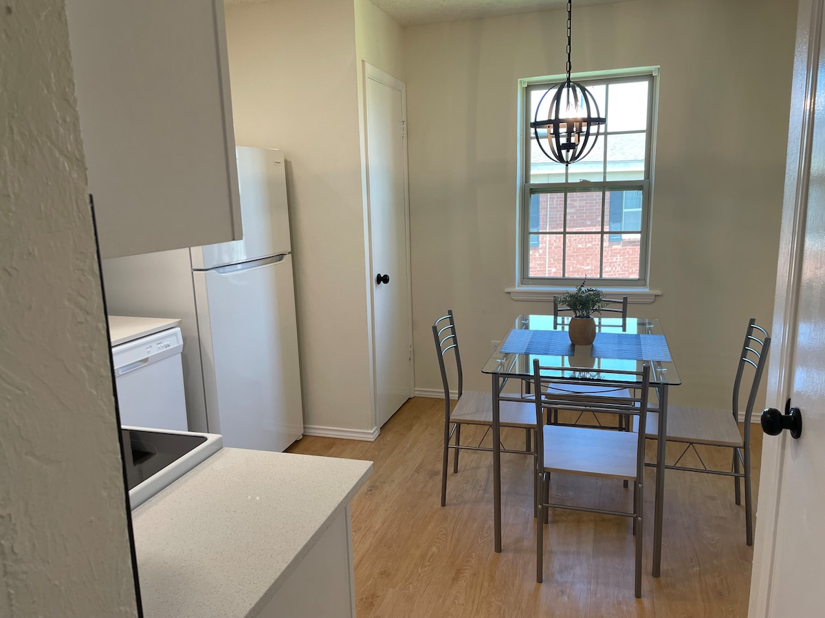 The Uptowns is a luxury unit in a newly renovated 1932 foursquare style building in the heart of OKC. Just out the front door you are in walking distance to coffee, food, drinks and entertainment on Uptown 23rd and just minutes from all major freeways. Midtown, downtown and some of OKC’s most popular historic neighborhoods. Paseo Arts District and Plaza District are just around the corner as well as OU Medical and Bricktown. (2-5 min) Equipped with wi-fi, smart TV, Laundry and covered parking.