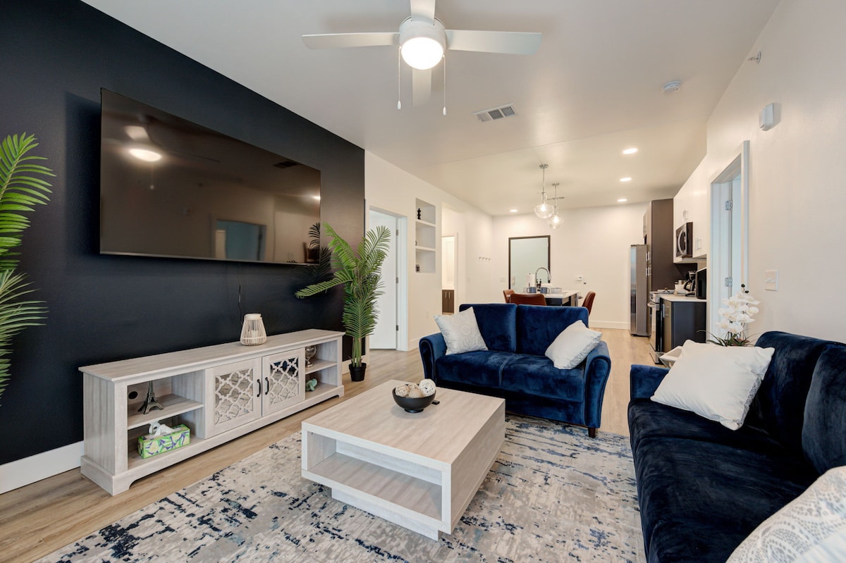 Step into comfort and contemporary in this beautifully furnished 2-King Bedroom Private Apartment. Designed with the comfort of Families, Business Professionals, or Co-Travelers in mind. Conveniently located in Midtown, near Downtown OKC! • Fast Wi-Fi • Coffee & Coffee Maker in Unit • Convertible Workspace • Top-of-the-Line Gym • Fully Equipped Kitchen • In-Unit Washer & Dryer • Shampoo, Conditioner & Body Wash Provided • Near Coffee Shops & Restaurants • 5 Minutes from Paycom Center