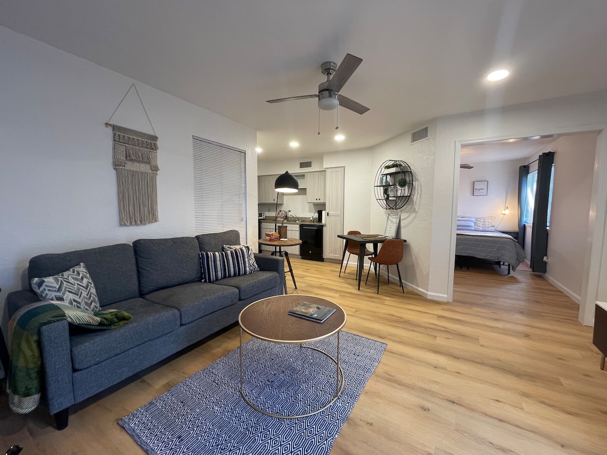 Stay in this FULLY-RENOVATED, updated, unique studio with more than you can ask for. Enjoy coffee in the morning on your private outside balcony. Amazingly modern, classy, and elegant studio! Entire private condo in a gated community. Equipped with everything, Netflix, high-speed Internet, microwave, fridge, dishwasher, & stove. Only 5 mins to Lake Hefner, mall, theater, 12 miles to Bricktown. Close to Top Golf, world class restaurants, Wal-Mart, Target, & more. No smoking. Very quiet!