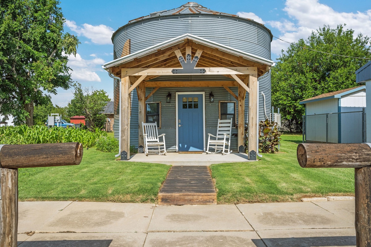 Escape to a unique retreat with our silo Airbnb! This converted grain bin offers a one-of-a-kind stay. Inside, find modern comforts fused with rustic charm. A staircase leads to a cozy bedroom loft, while the lower level boasts a well-equipped kitchen, snug living area, and an extra stow away bed. Located near Fort Sill, Medicine Park, and the Wichita Wild Life Refuge, our silo Airbnb promises an unforgettable getaway.