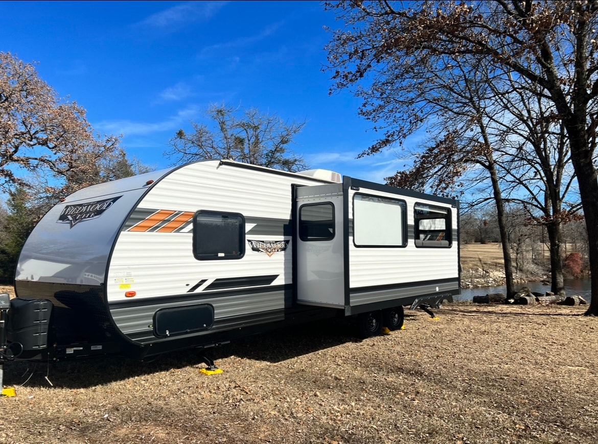 Escape to nature in our cozy Cherokee Grey Wolf camper! Perfect for couples or solo adventurers, this stylish retreat features a comfy bed, kitchenette, full bathroom, and heat/AC. Nestled in our privately owned RV Park with outdoor seating, fire pit, and stargazing views. Whether you're exploring trails or just unwinding, this camper has everything you need for a relaxing, off-grid-style stay—with all the comforts of home.