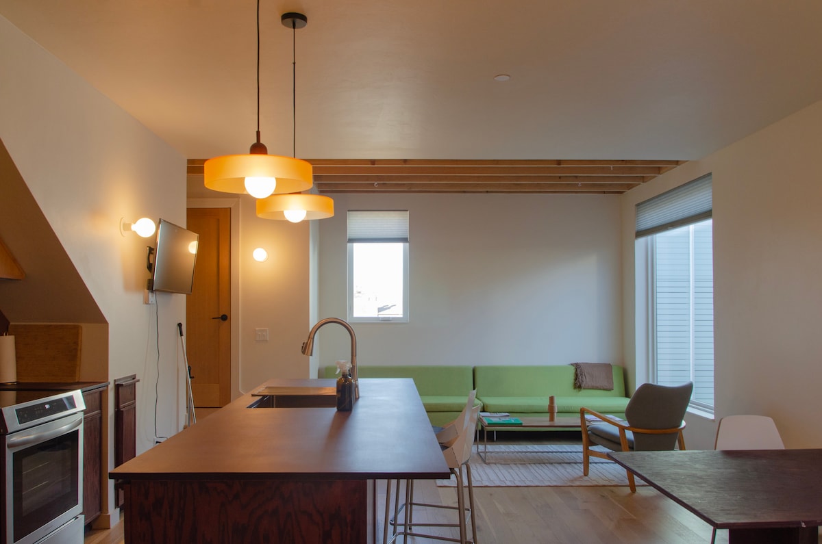 Kick back and relax at this unique, tranquil getaway. Both bedrooms feature brand-new Purple mattresses for an ultra-comfy night’s sleep, and the entire condo has been recently renovated with modern finishes and all new appliances. From the outside, it gives off cozy treehouse vibes—step inside, and you’ll find a sleek, stylish interior perfect for unwinding.