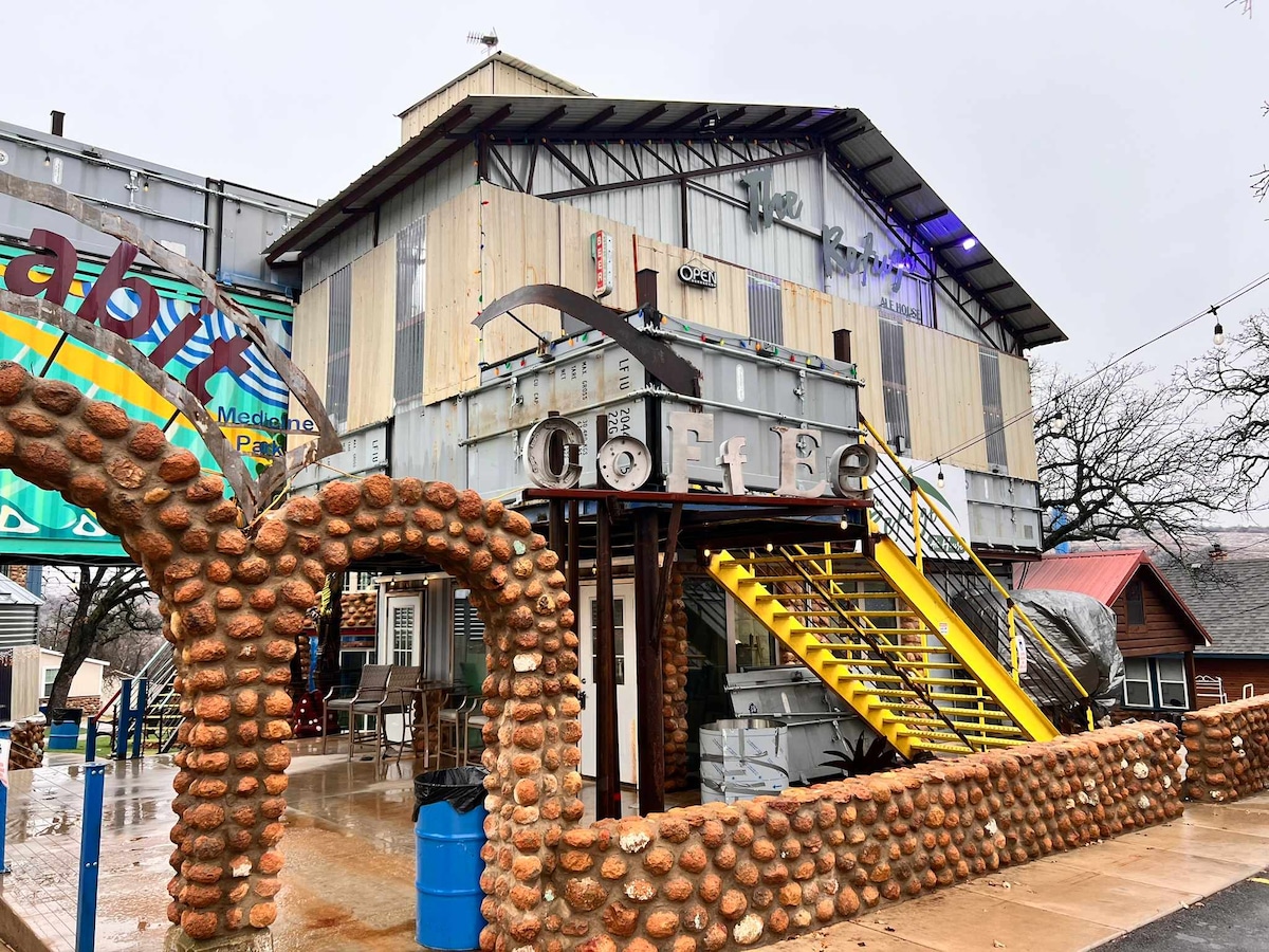 Here you will find a 40 ft high cube shipping container that has been renovated into a modern tiny home. Nestled in a clearing, surrounded by timber & flowing creek, this container has a top deck that allows guests to experience the unobstructed view of the vast Oklahoma sky. Inside you'll find a completely operational tiny home. Outfitted with full size appliances & a queen size bed. The cabin is located just minutes from Winstar World Casinos, The Red River & Lake Murray.
